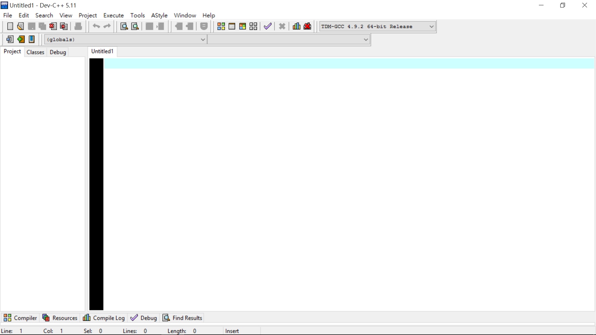 Dev-C++ can be downloaded from the web site of Bloodshed Software. The following figure is the main window of Dev-C++: